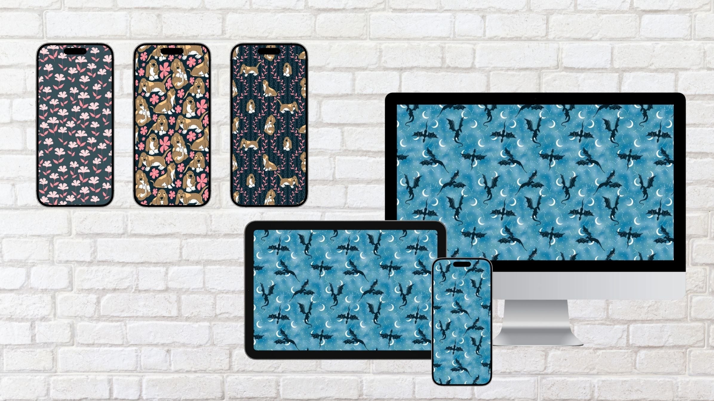 Cute Dragon Bookshelf Wallpaper | Celestial Fantasy Phone, Tablet & 4K Desktop Background | Instant Digital Download