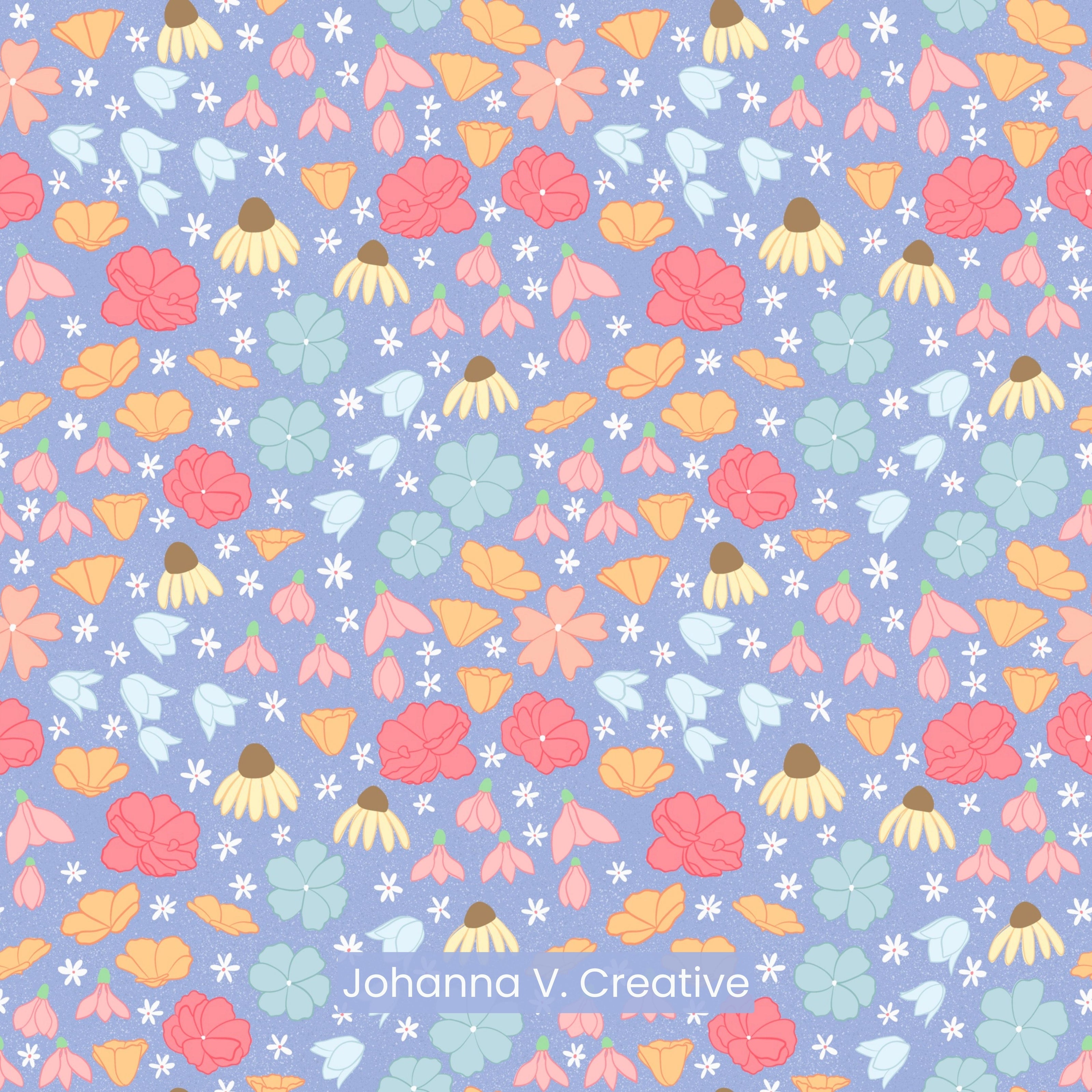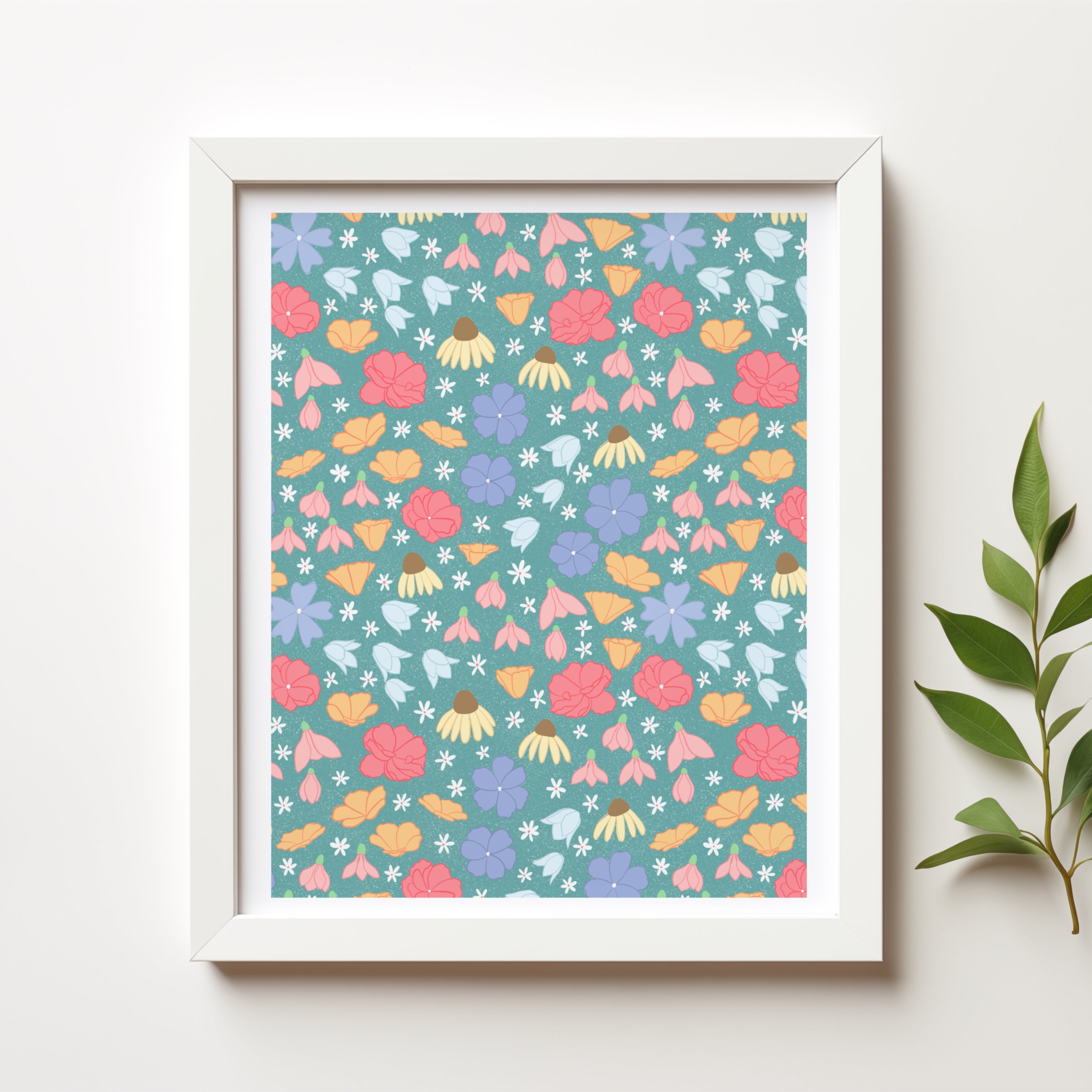 Wildflower Meadow Canvas Wall Art – Botanical Floral Print in Periwinkle (8x10 or 16x20)