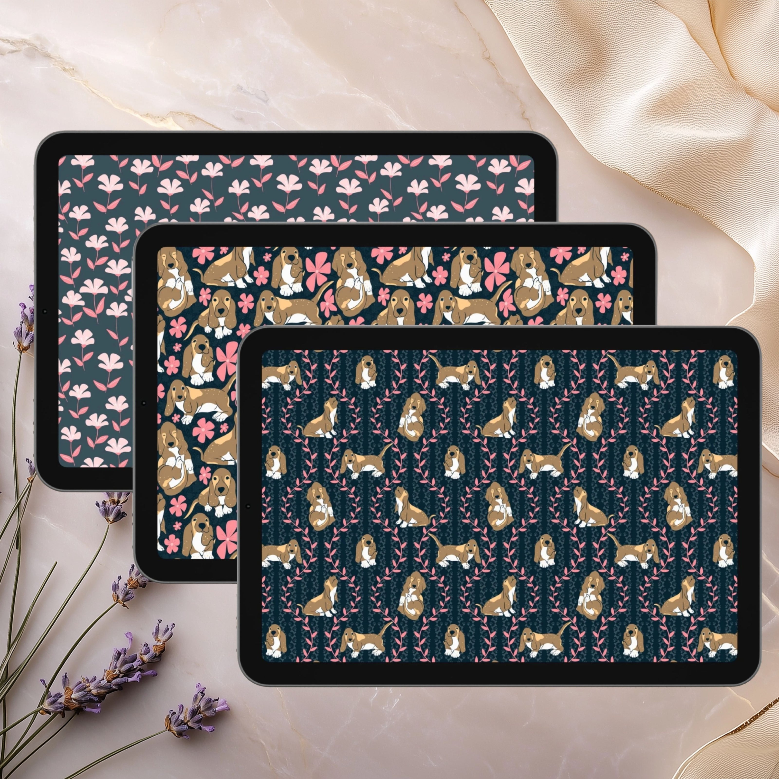 Basset Hound Canvas Print Pink – Floral Dog Wall Art (8x10, 16x20) or Printable