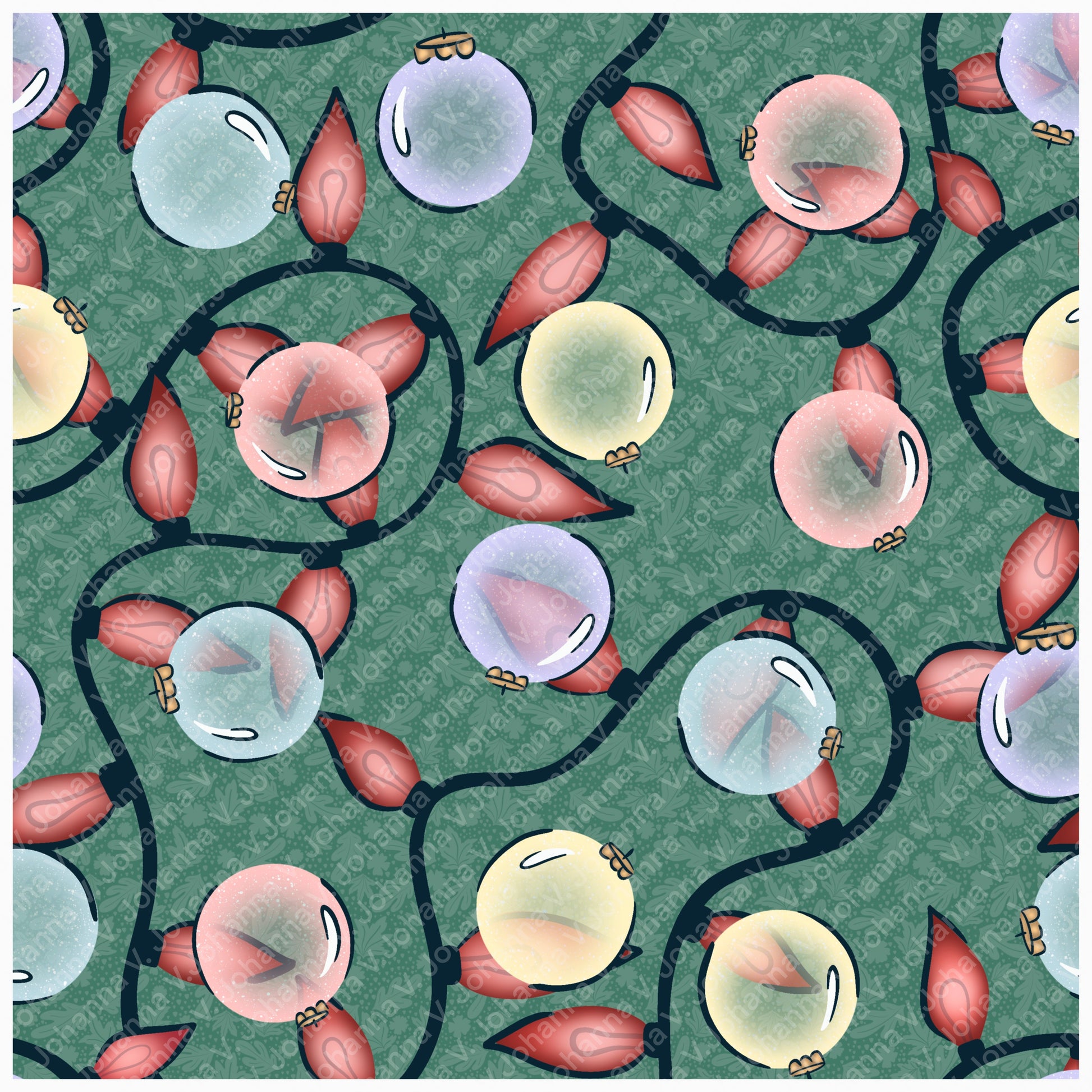 Christmas Ornaments & Lights Seamless Pattern Green | Holiday Digital Design | 12x12β PNG
