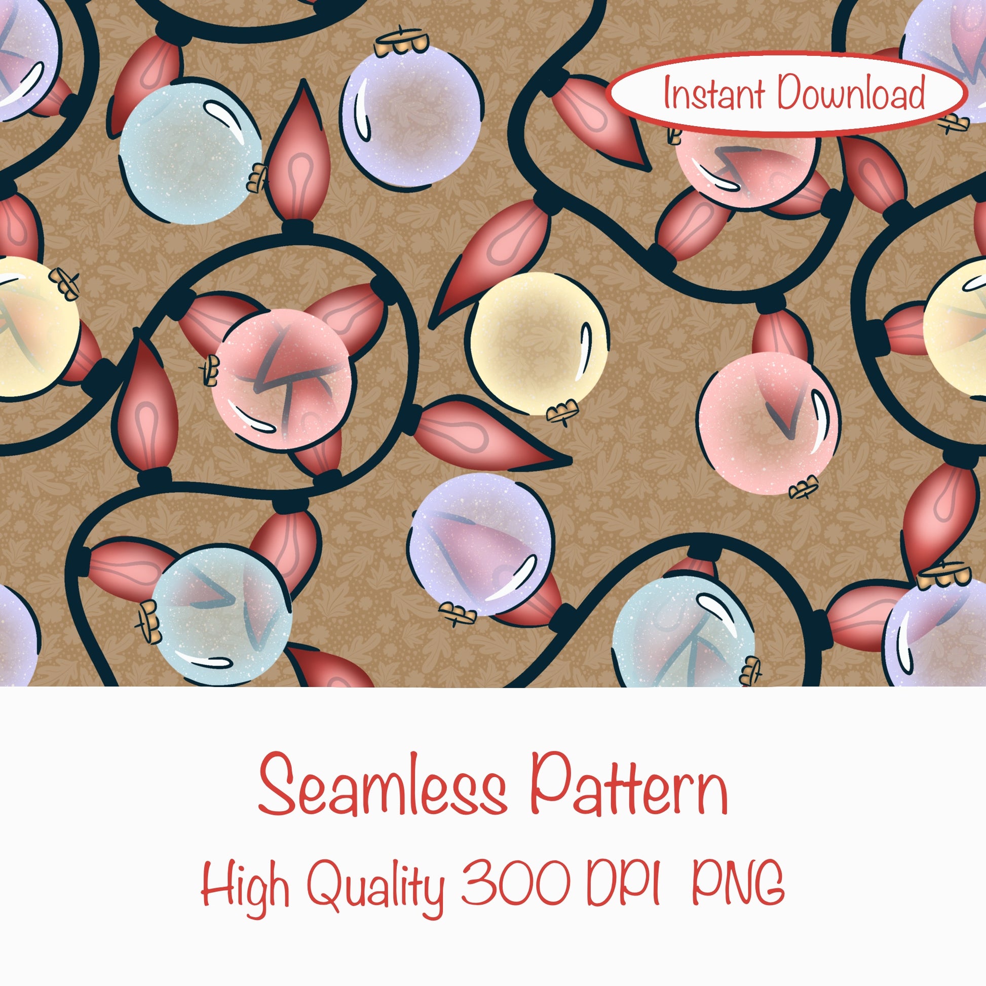 Christmas Ornaments & Lights Seamless Pattern Brown | Holiday Digital Design | 12x12β PNG