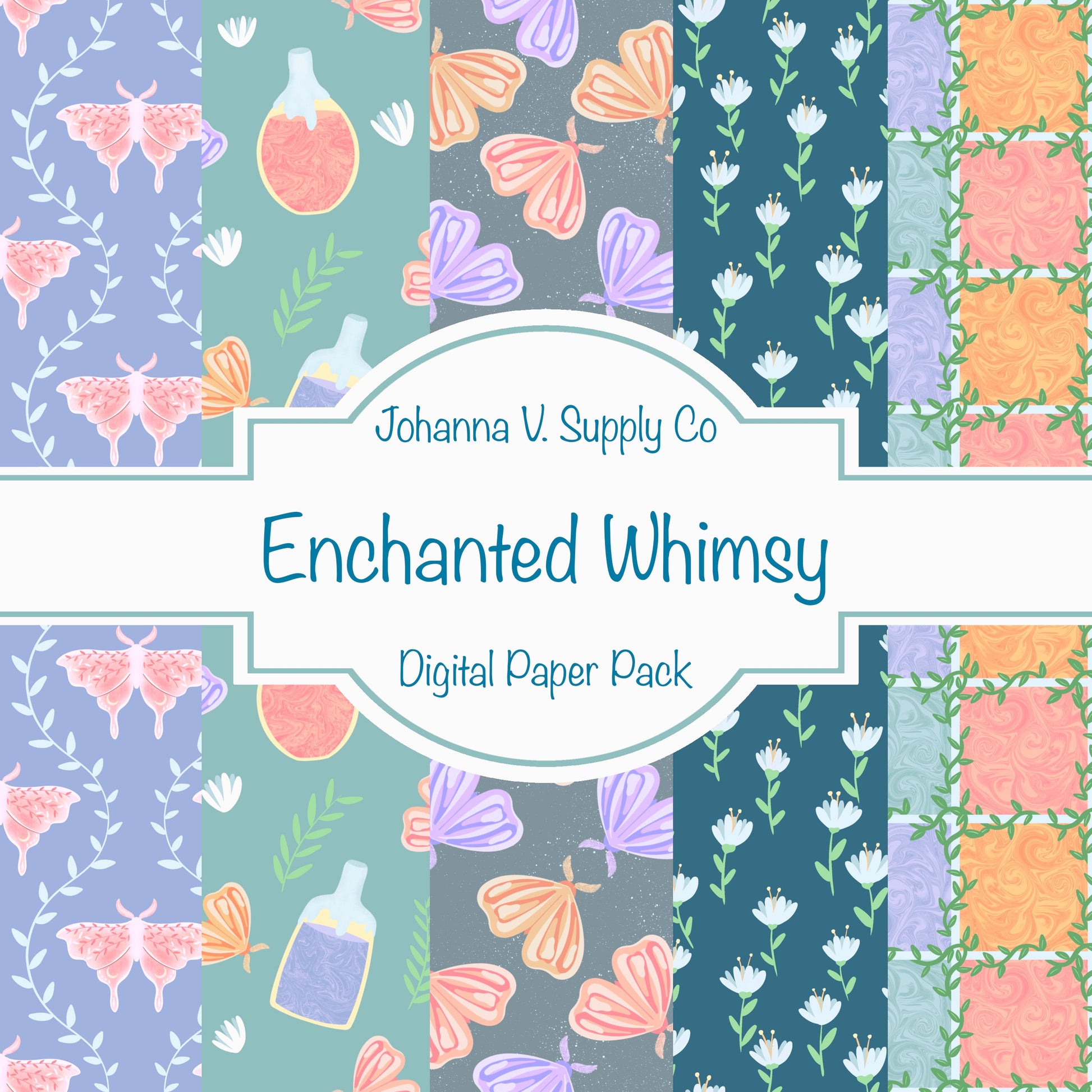 Enchanted Whimsy Digital Paper Pack | Moths, Potions & Botanicals | Magical Scrapbook Backgrounds | Commercial & Personal