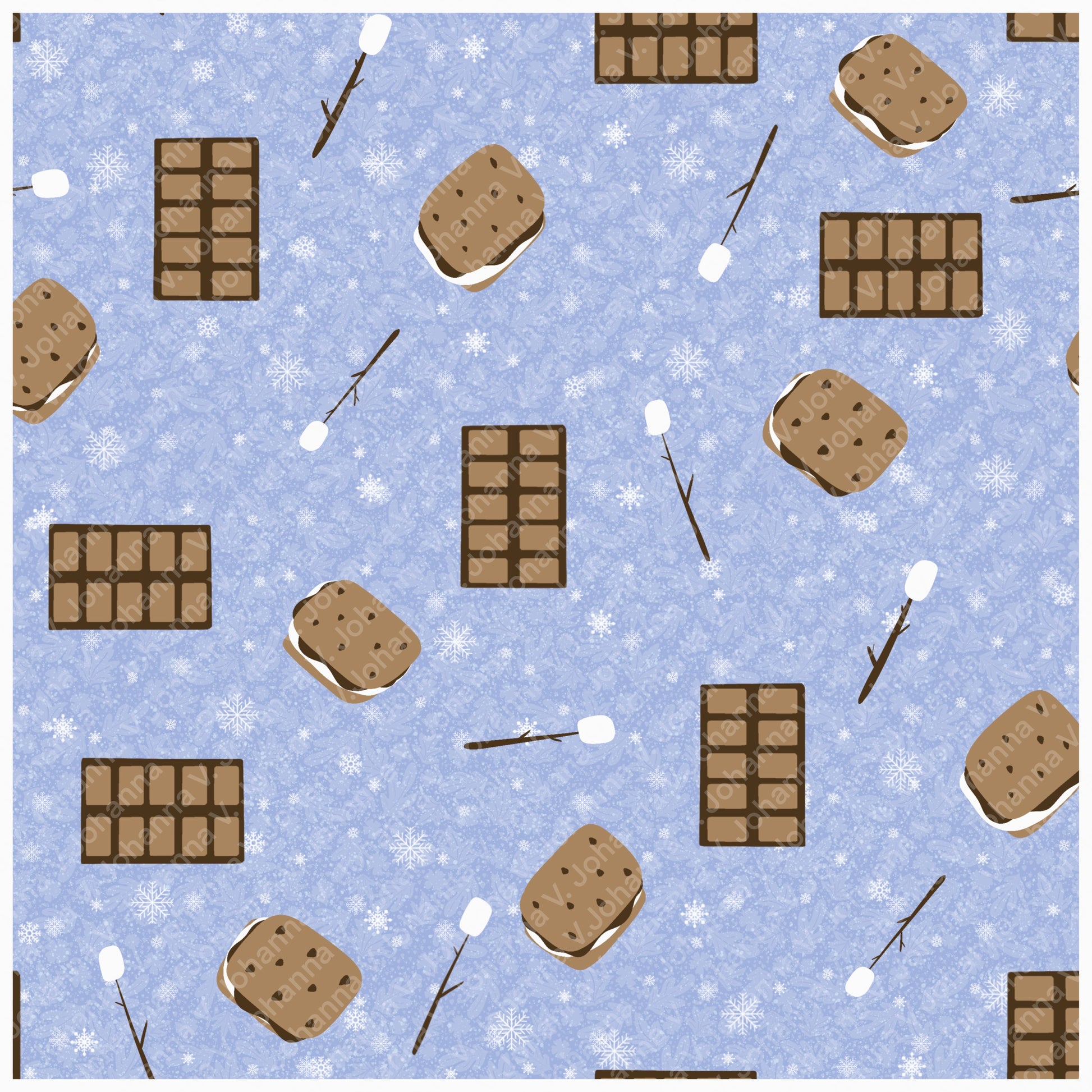 S’mores Seamless Pattern Purple | Campfire Treats PNG 12x12 | Cozy Dessert Design | Commercial Use