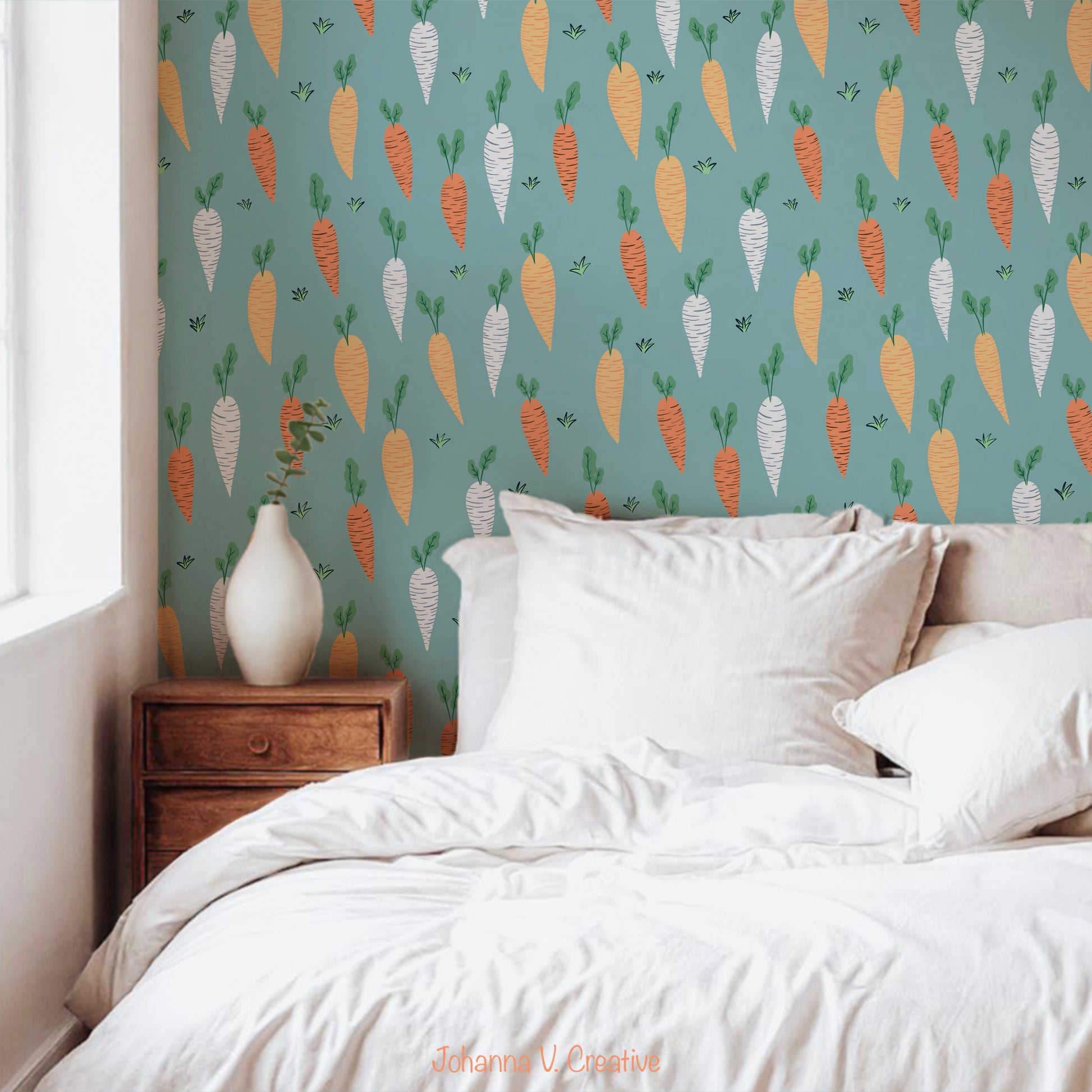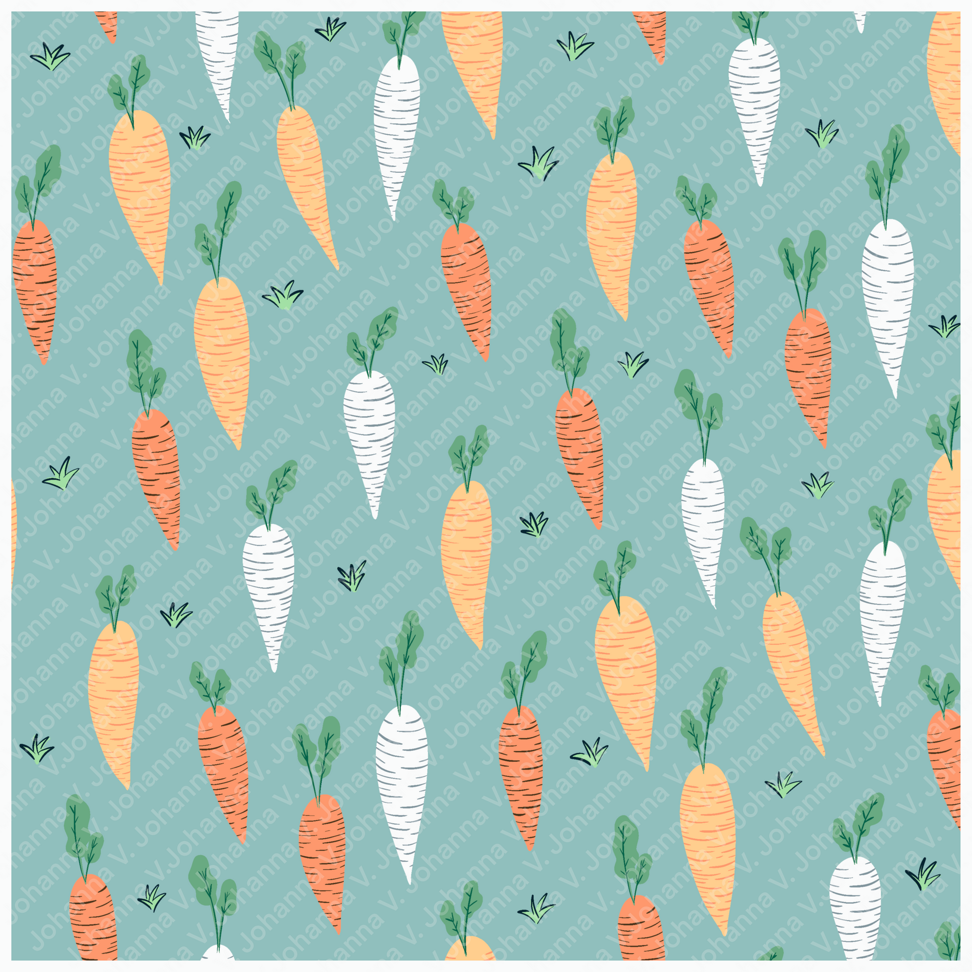 This seamless carrot pattern brings a lighthearted, cheerful feel to your designs—perfect for spring collections, Easter themes, and cozy cottagecore aesthetics.