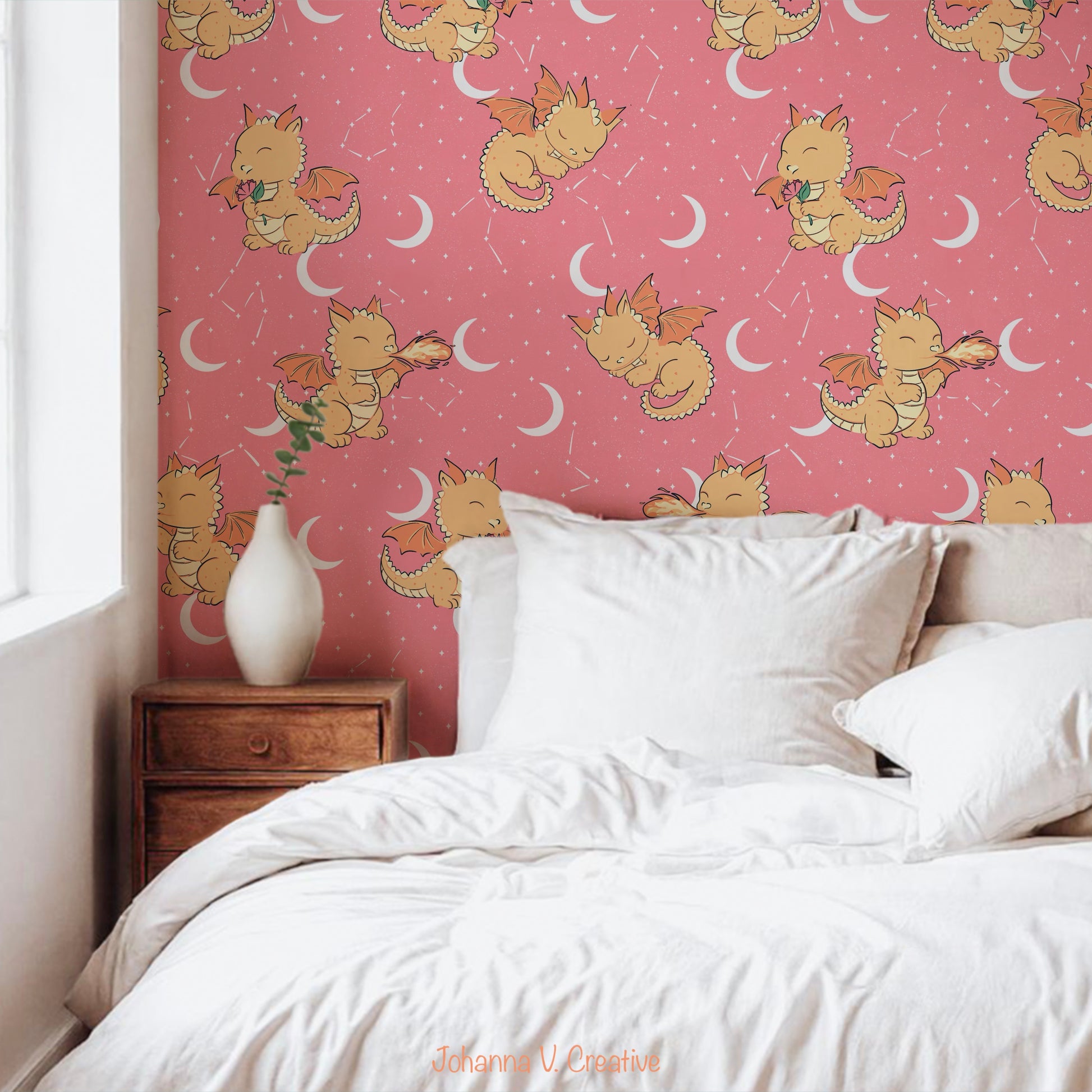 Featuring dragons surrounded by moons and stars, this high-quality seamless repeat design tiles effortlessly and works beautifully for print-on-demand, sublimation, digital paper, stationery, planners, apparel, mugs, wrapping paper, wallpapers, and fantasy-themed décor.