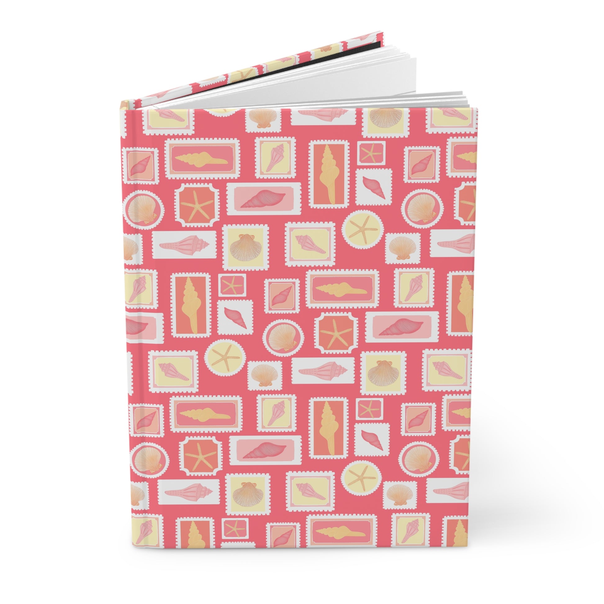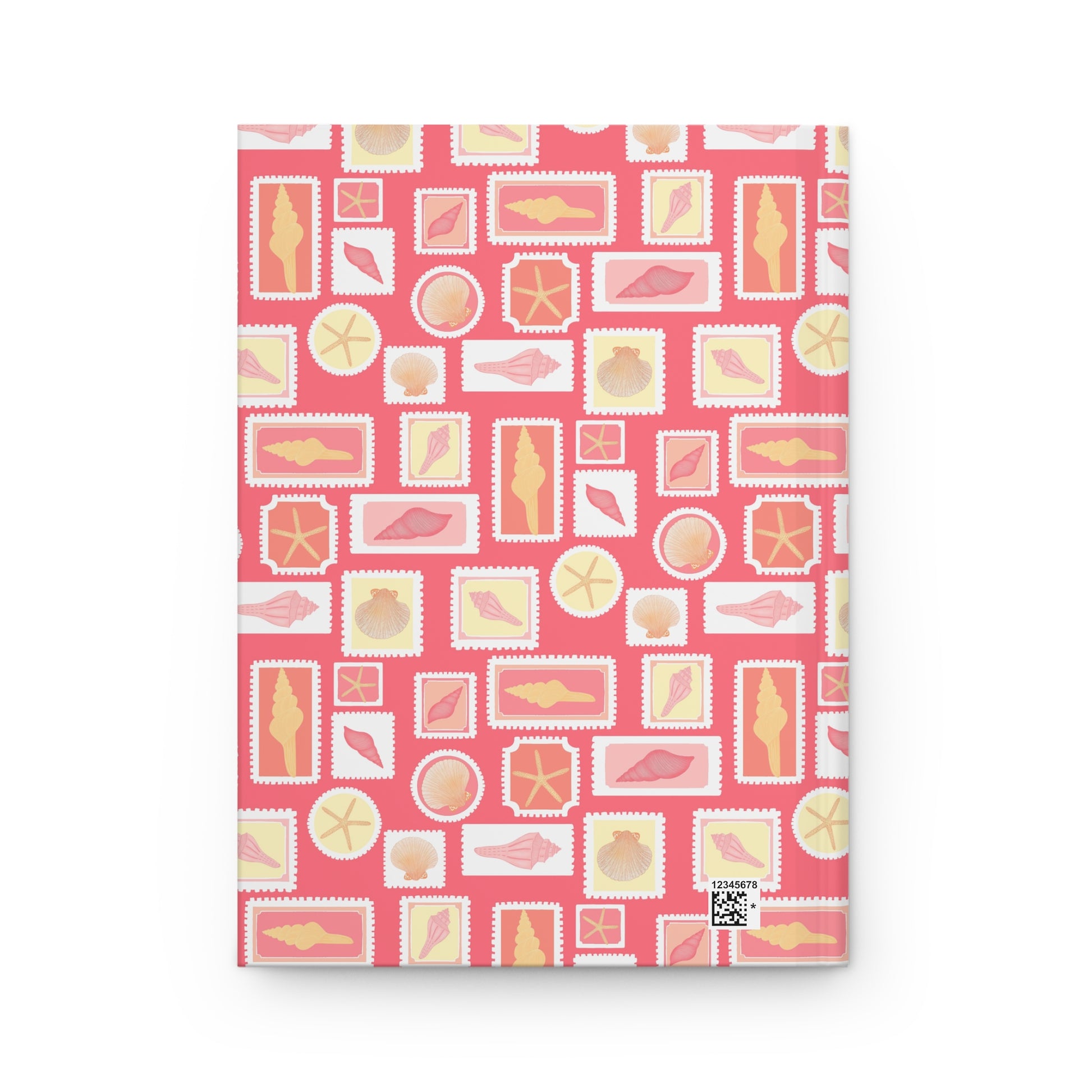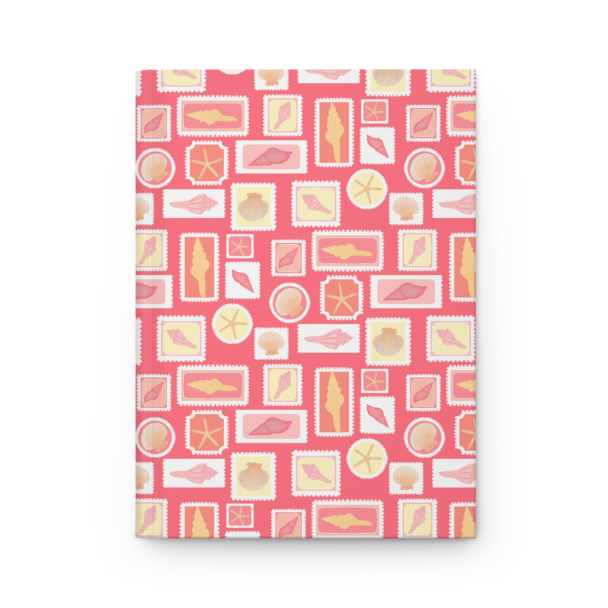 Vintage Coastal Seashell Journal | Beach Postage Stamp Notebook | Retro Ocean Aesthetic Diary | Pink Summer Shell Notebook | Cute Coastal Gift for Her