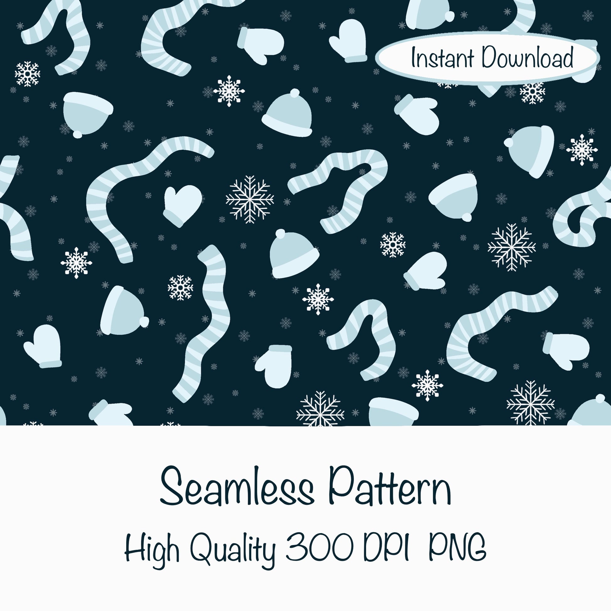 Winter Apparel Seamless Pattern Blue | Hats, Mittens & Scarves | Cozy Winter PNG 12x12 | Personal & Commercial Use